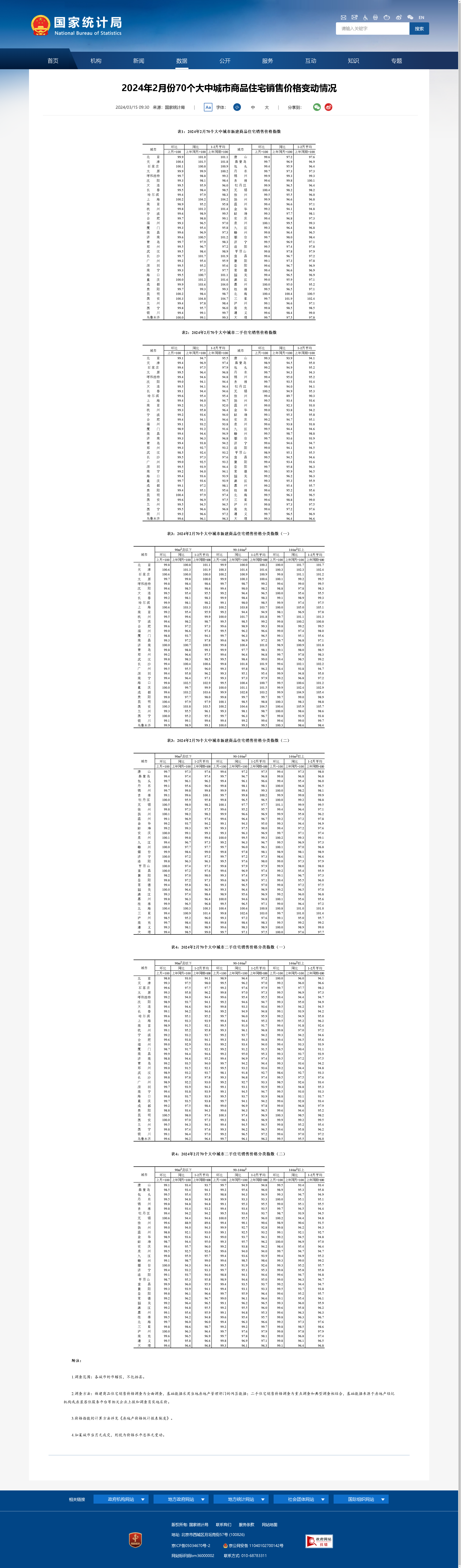 2024年2月份70個大中城市商品住宅銷售價格變動情況