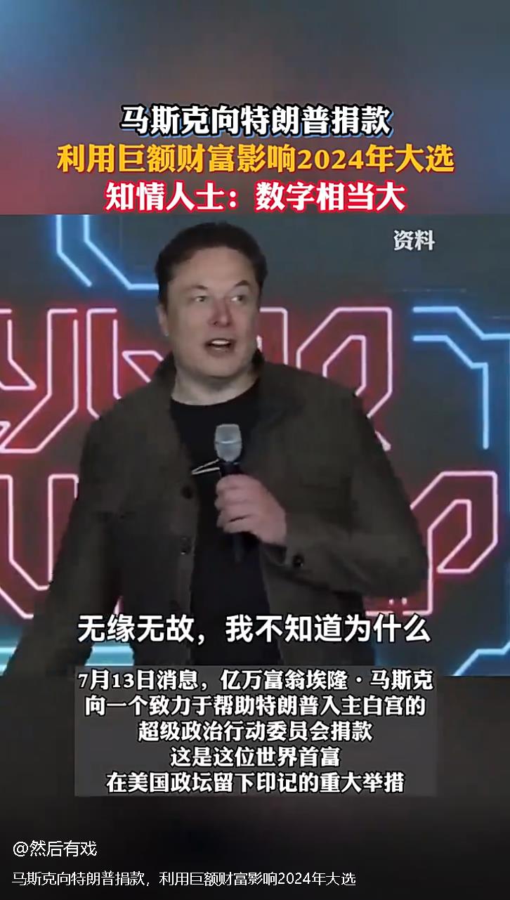 馬斯克幫助特朗普,也正是看中這一點(diǎn),特朗普上臺(tái),一定對(duì)他有好處,賠本的買(mǎi)賣(mài)他是不會(huì)買(mǎi)賬的!