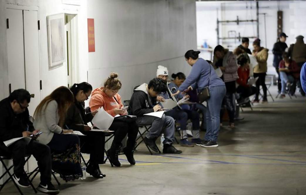 美國洛杉磯,新冠疫情期間申領失業救助金的美國民眾。美聯社