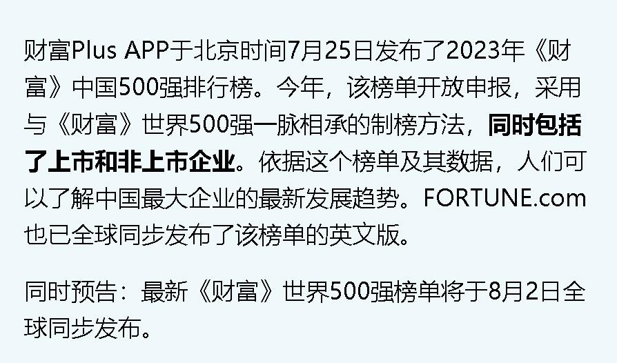 《財富》中國500強明日放榜,哪些企業能夠進入今年八月初的世界500強大榜,這是我關注和關心的大事!