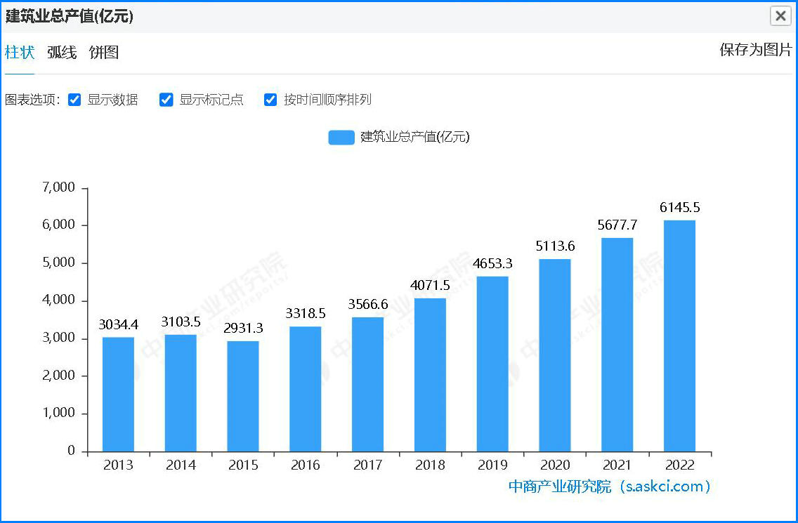。讓我們看看近二十年建筑業發展速度,下面是