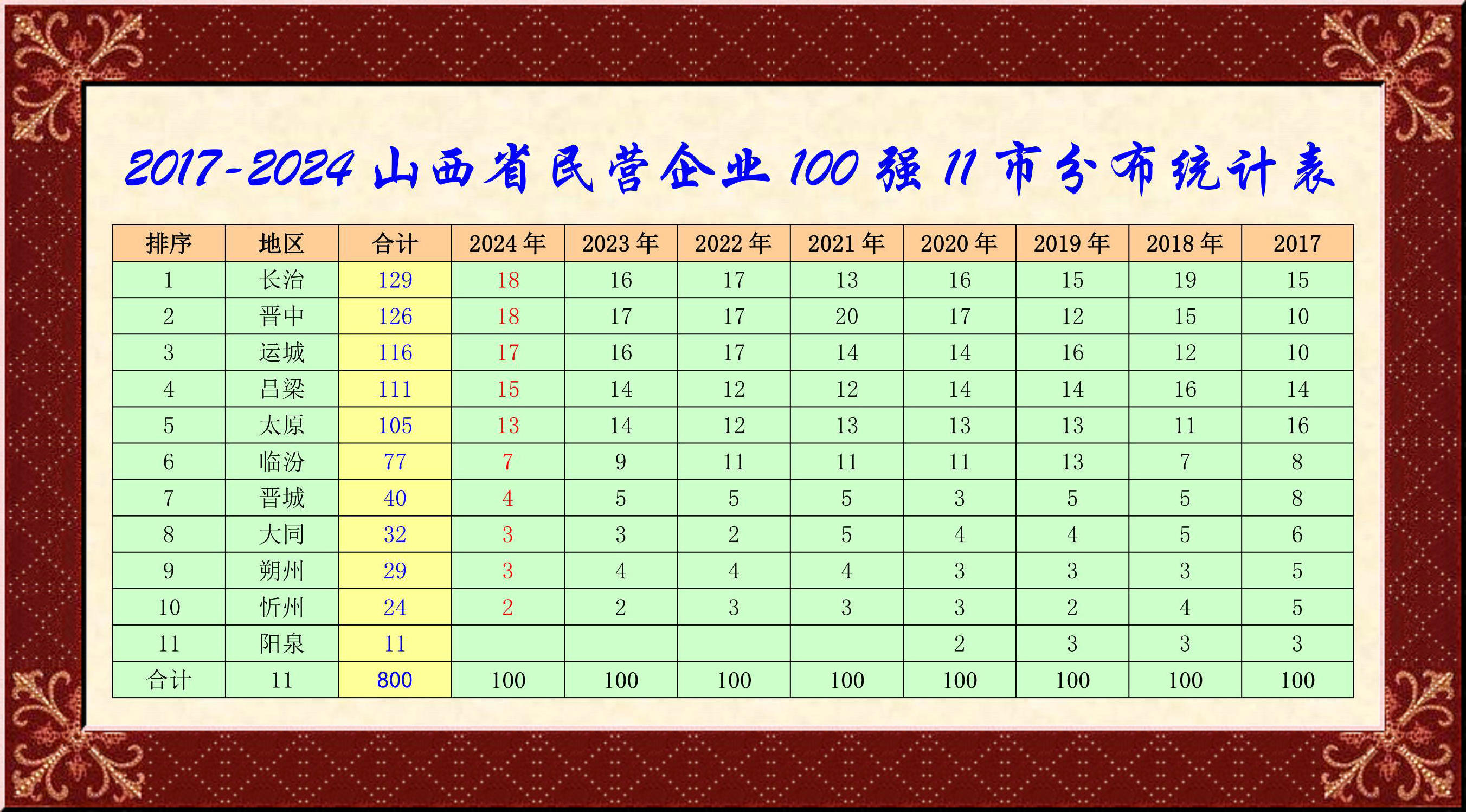 序號(hào) 企業(yè)名稱 所在地 合計(jì) ?各年排名 2024 2023 2022 2021 2020 2019 2018 2017
