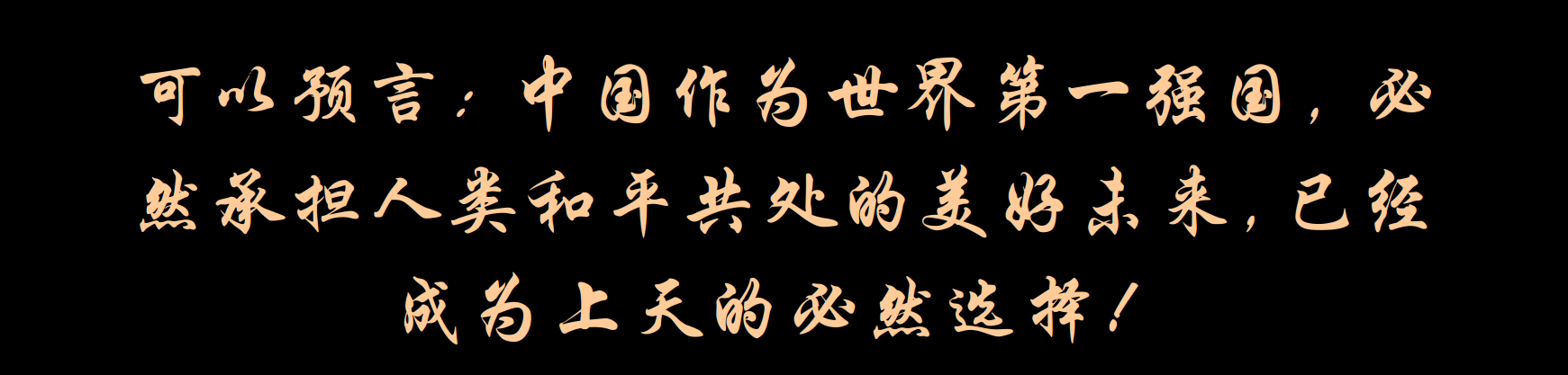 可以預(yù)言:中國作為世界第一強國,必然承擔(dān)人類和平共處的美好未來,已經(jīng)成為上天的必然選擇!