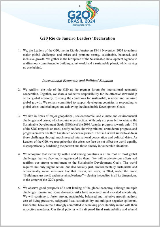 感悟2024里約熱內盧G20峰會的大國擔當——中國主張贏得全世界廣泛認同和高度贊揚