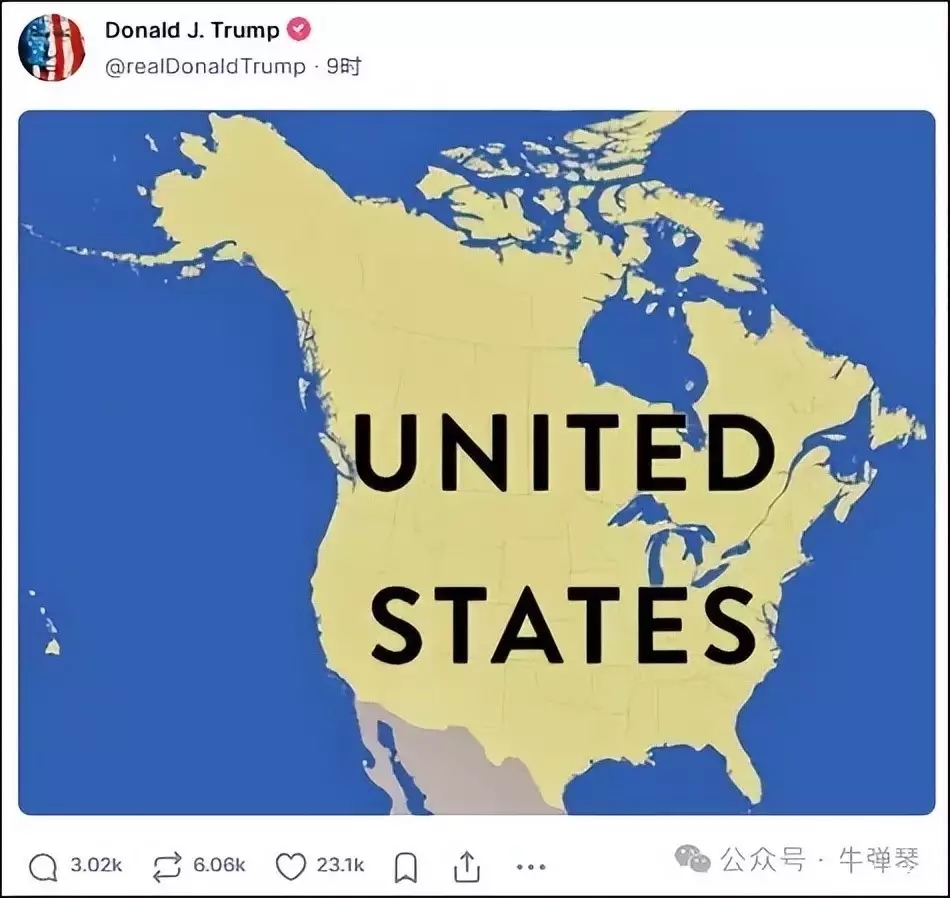 事實(shí)上,在轉(zhuǎn)發(fā)這張圖之前,特朗普更放出話來(lái),拒絕排除“以軍事或經(jīng)濟(jì)脅迫手段控制巴拿馬運(yùn)河和格陵蘭島”的可能性,并再度提及“吞并加拿大”。