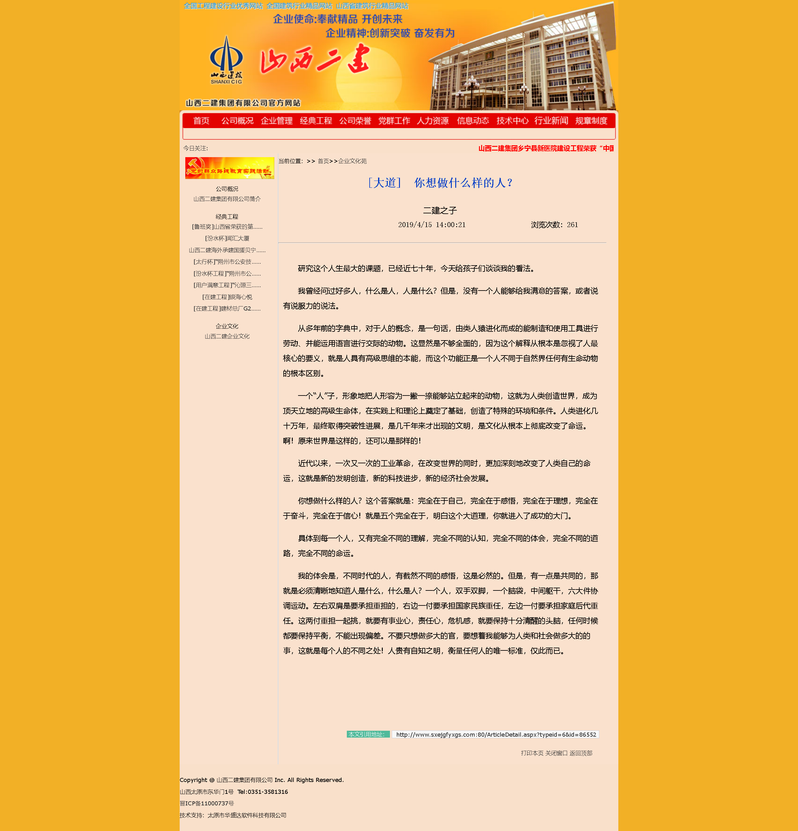 六十多年的社會實踐,豐富的閱歷,逐步形成了只屬于自己的一套做人做事,為人處世的哲學思想和觀念,可以說是經驗總結,給山西二建的青年們分享一下,或許能夠在你困惑與迷茫之中,一定能夠起到豁然開朗,明心明志的作用。