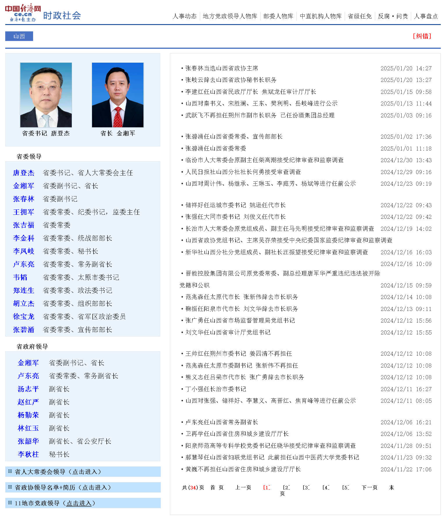 人事動態 人事盤點 中直機構 部委 省級任免 地方黨政 反腐·問責