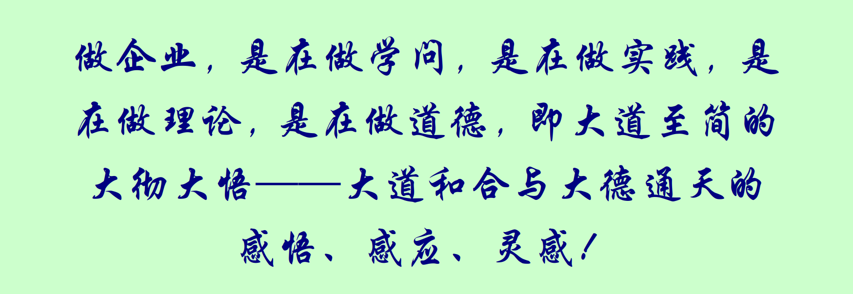 做企業,是在做學問,是在做實踐,是在做理論,是在做道德,即大道至簡的大徹大悟——大道和合與大德通天的感悟、感應、靈感!
