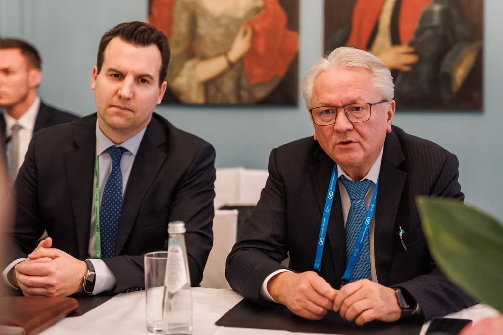當地時間2月16日,帕佩格(右)參加與烏克蘭國防部長烏梅羅夫的會見 烏國防部網站