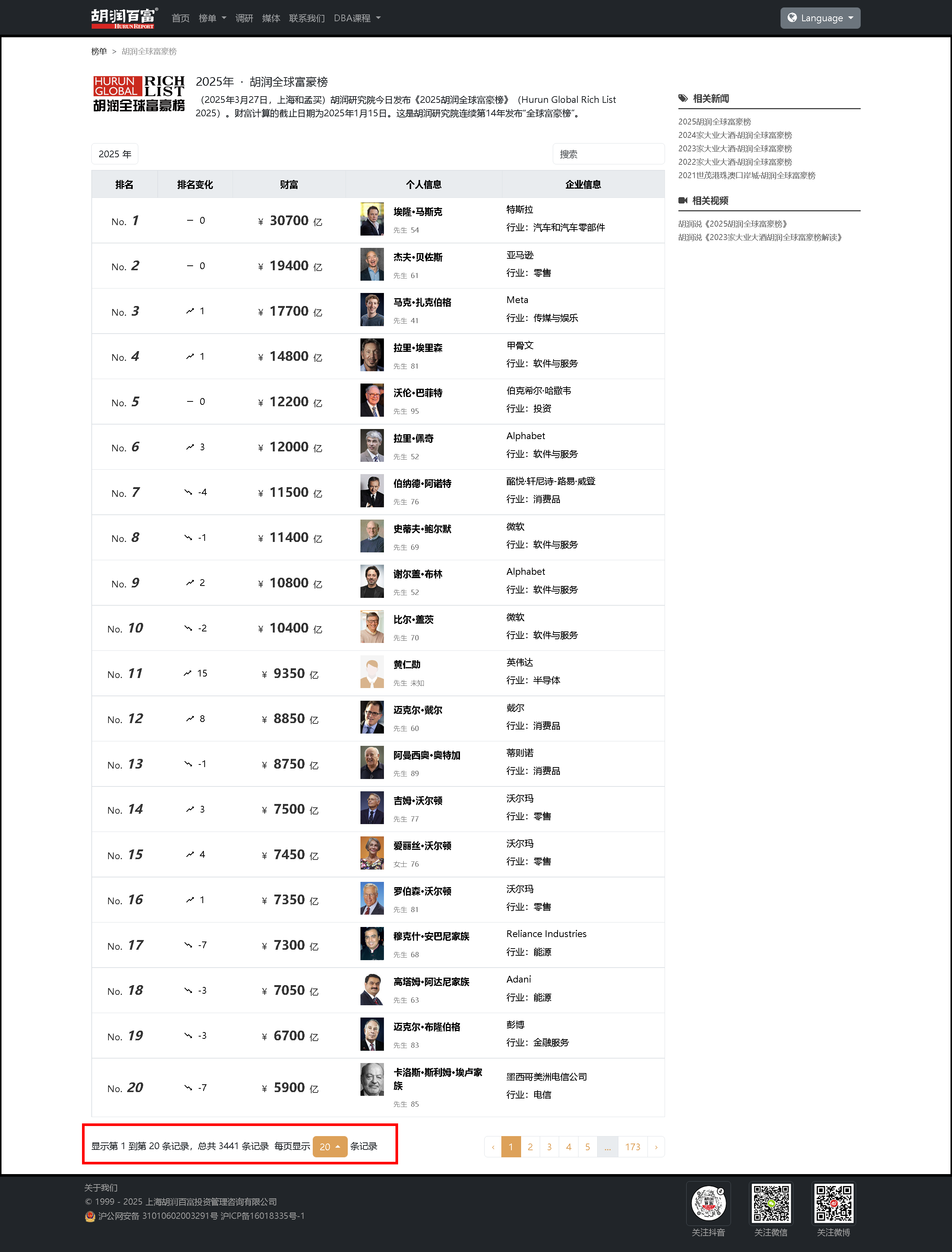 感應今天《胡潤》公布2025年3441位全球富豪榜全名單,正中我意,下載編輯,及時刊出,送給大家,一飽眼福!