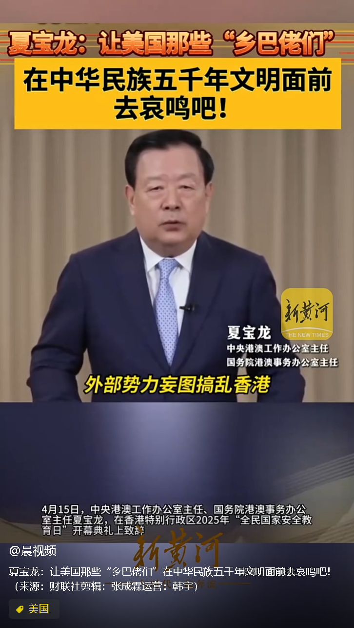 譚耀宗引述夏寶龍講話表示,在當前美國對我們極限打壓的形勢下,更需要企業家以「烈火金剛」的堅強品質建設香港、扎根香港,在國家利益、民族大義面前,舍小我為大我,用實際行動愛國護港。