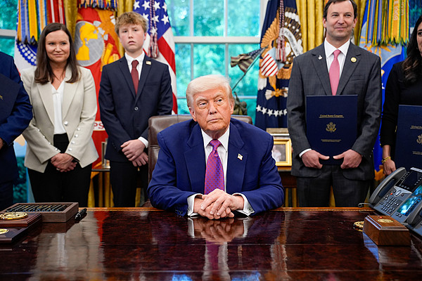 5月9日,特朗普在白宮橢圓形辦公室簽署行政命令并向記者發表講話。 視覺中國