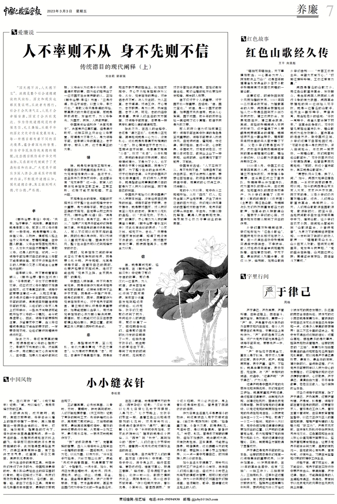 “國無德不興,人無德不立”。政德是整個(gè)社會道德建設(shè)的風(fēng)向標(biāo)。歷史和現(xiàn)實(shí)也都反復(fù)證明,從政者有德行,社會才會風(fēng)清氣正,人民才會幸福安康,國家才會興旺發(fā)達(dá)。作為傳統(tǒng)道德規(guī)范的孝悌忠信、禮義廉恥,從數(shù)千年的歷史文化中傳承發(fā)展而來,每一種德目都有著不同的層次境界,蘊(yùn)含著深遠(yuǎn)的智慧。作為中華民族傳統(tǒng)美德的精髓,這些德目既傳承中華文明血脈,又在新時(shí)代被賦予了更高標(biāo)準(zhǔn)和內(nèi)涵,廣大黨員干部應(yīng)當(dāng)深入體會、繼承其中的精神內(nèi)涵,不斷提升道德認(rèn)知,強(qiáng)化道德自律,真正做到明大德、守公德、嚴(yán)私德。
