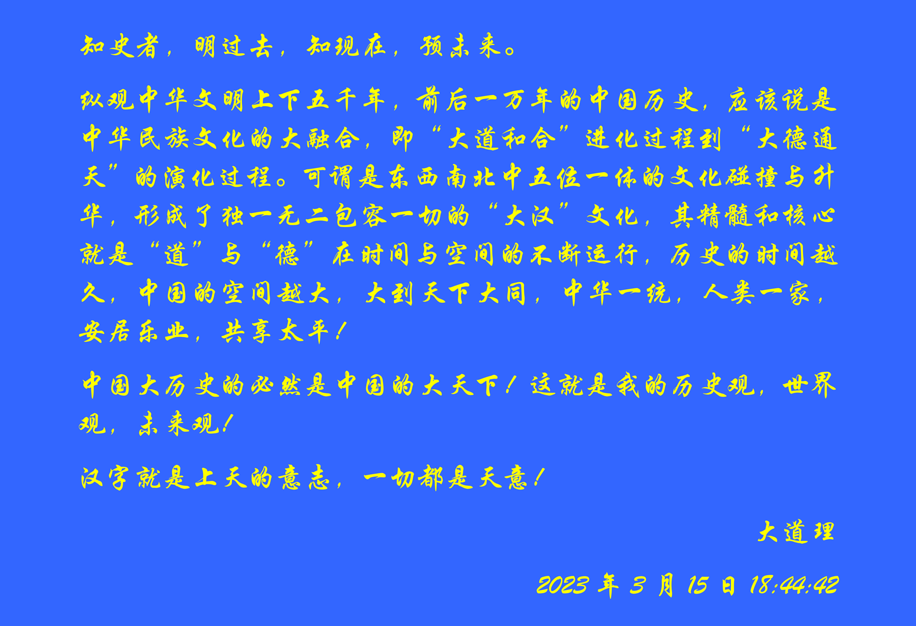 中國大歷史的必然是中國的大天下!這就是我的歷史觀,世界觀,未來觀!