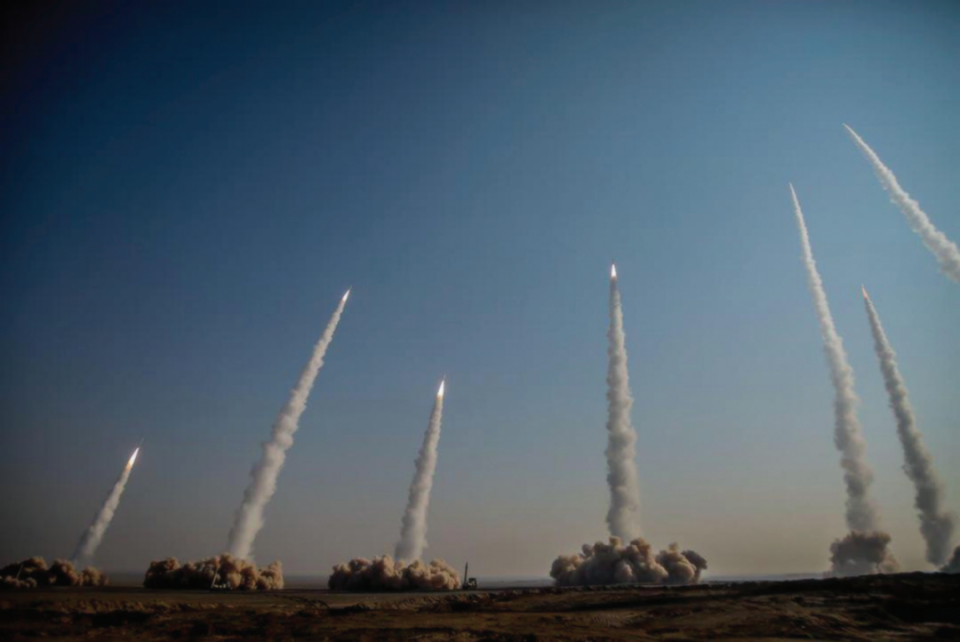 伊朗導(dǎo)彈齊射畫面。由于當(dāng)前以色列的空中優(yōu)勢(shì),如何在長期對(duì)峙中維持這樣的畫面,也是擺在伊朗面前的一大課題。