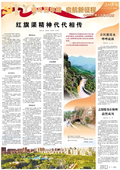 紅旗渠的修建離不開黨的領(lǐng)導和人民群眾的艱苦奮斗。時任河南林縣(今林州市)縣委第一書記的楊貴作為紅旗渠總設(shè)計師,勇于擔當,克服重重阻力,歷時10年,終于建成被譽為“人工天河”的紅旗渠水利工程。