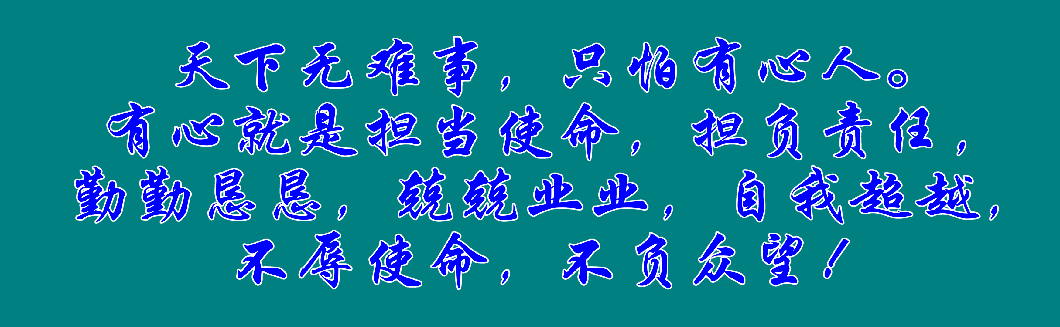 天下無難事,只怕有心人。有心就是擔當使命,擔負責任,勤勤懇懇,兢兢業業,自我超越,不辱使命,不負眾望!