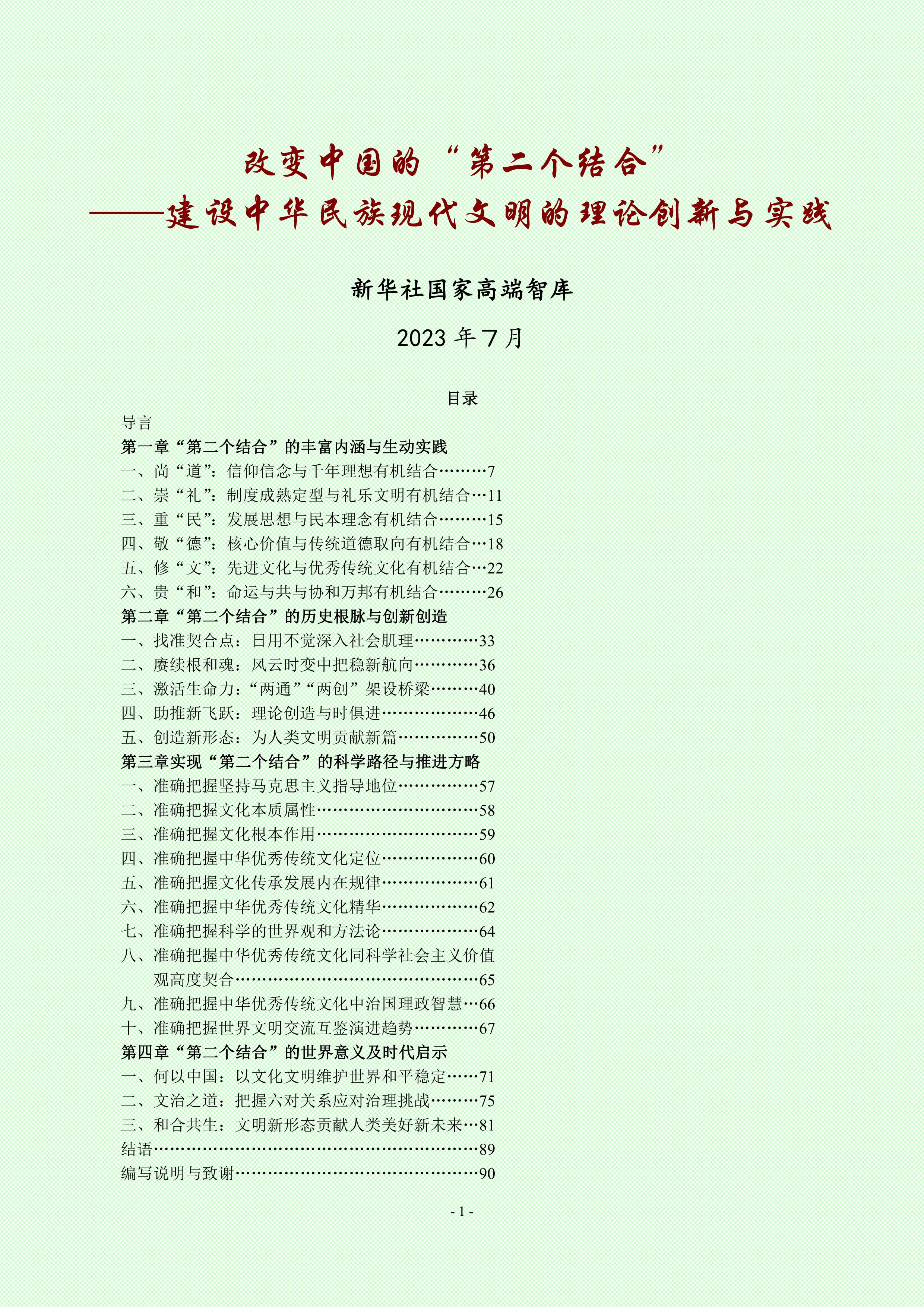 新華社今天全文發表了署名為國家高端智庫《改變中國的“第二個結合”——建設中華民族現代文明的理論創新與實踐》的理論思想指導。