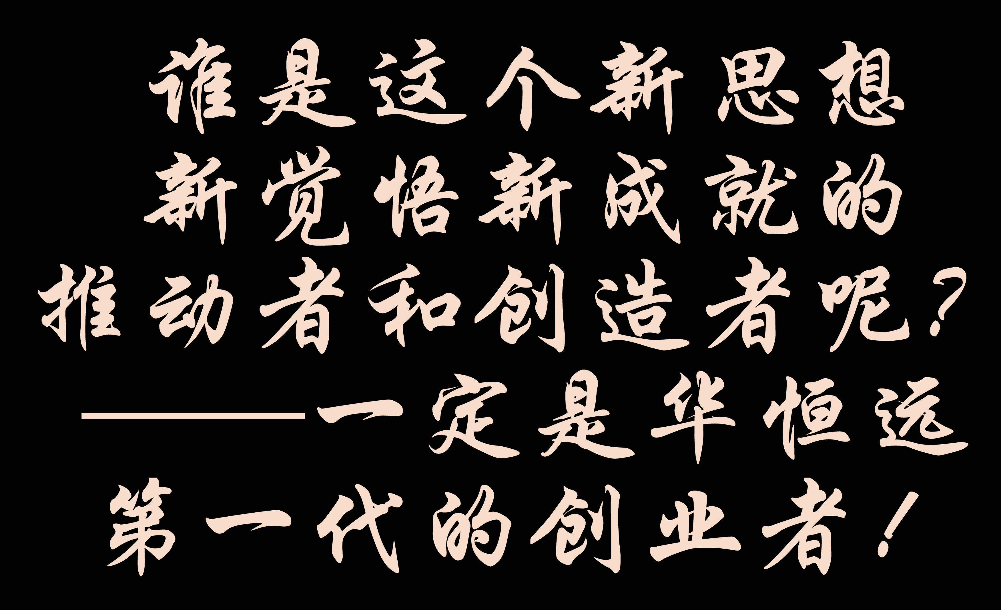 誰是這個新思想新覺悟新成就的推動者和創造者呢?——一定是華恒遠第一代的創業者!