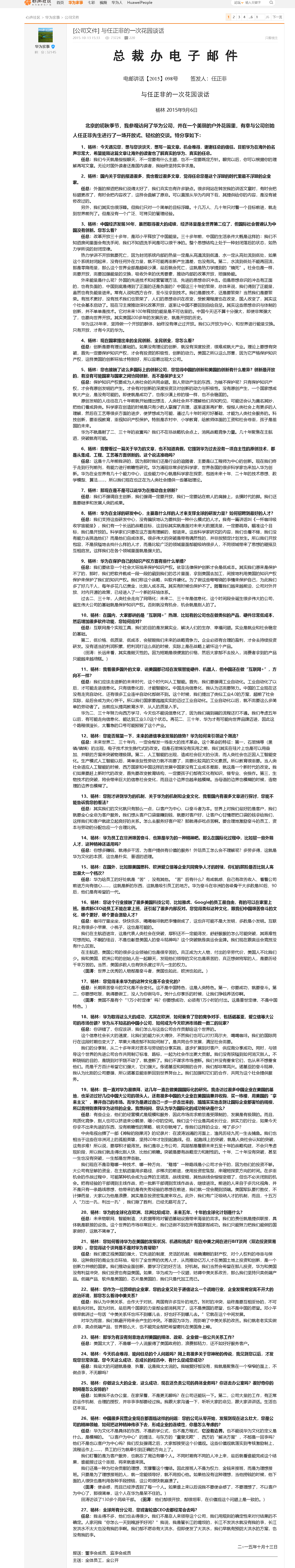 這是2015年任正非與楊林的一次輕松的會晤,談話內容卻不輕松!
