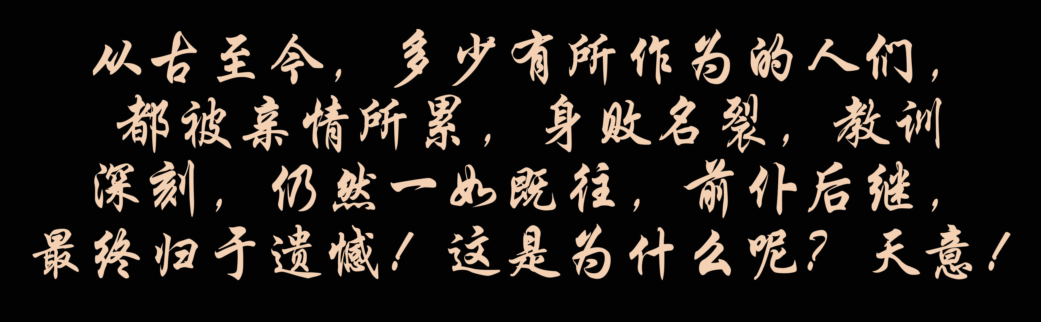 從古至今,多少有所作為的人們,都被親情所累,身敗名裂,教訓深刻,仍然一如既往,前仆后繼,最終歸于遺憾!這是為什么呢?天意!