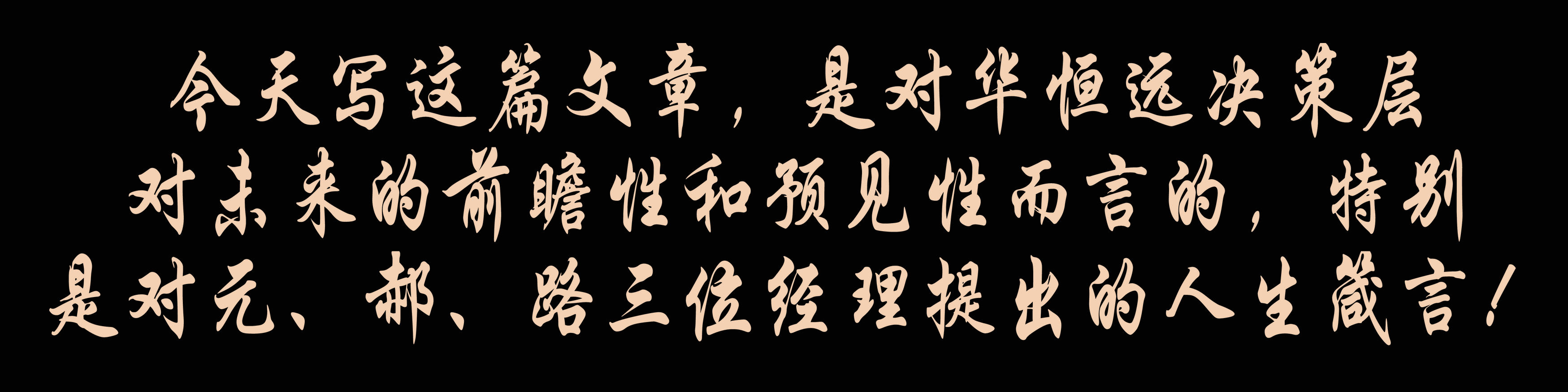 今天寫(xiě)這篇文章,是對(duì)華恒遠(yuǎn)決策層對(duì)未來(lái)的前瞻性和預(yù)見(jiàn)性而言的,特別是對(duì)元、郝、路三位經(jīng)理提出的人生箴言!