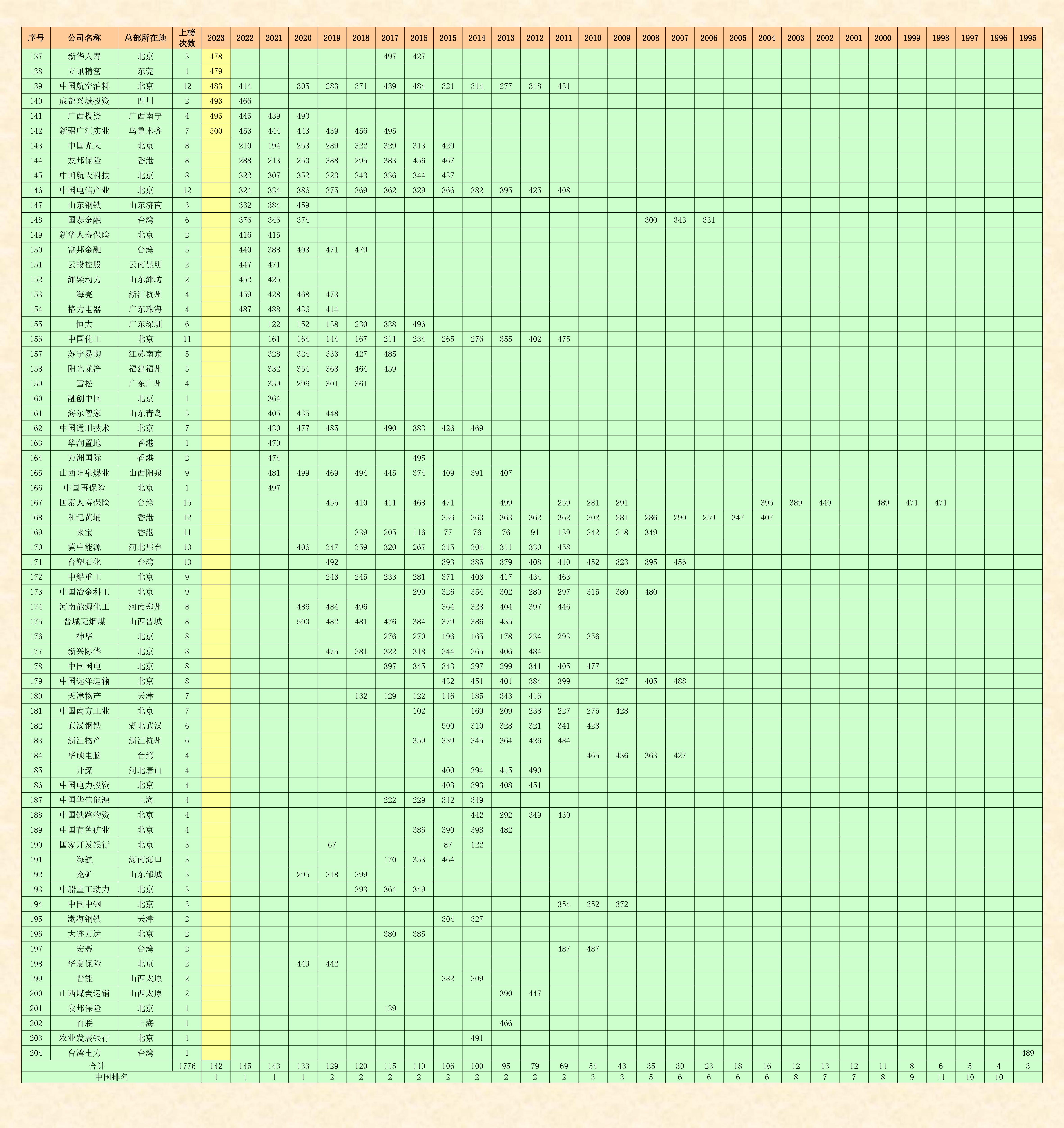 《財富》世界500強雜志社,從1995年開始在中國登陸,已經連續舉辦了29期中文版的世界500強排名榜,我收集到的完整資料,僅缺第一期1995年的全榜單,所以,目前只能編輯二十八期。即1996-2023年《財富》世界500強和中國上榜企業的名單,待日后有機會的話再補齊。