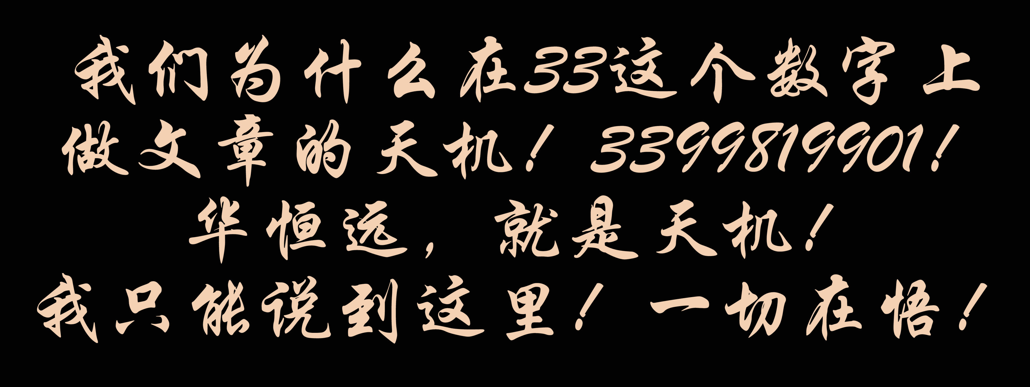 這就是大道和合和大德通天真正的奧妙所在,即因果關系的自然和必然!也正是我們為什么在33這個數字上做文章的天機!3399819901!華恒遠,就是天機!