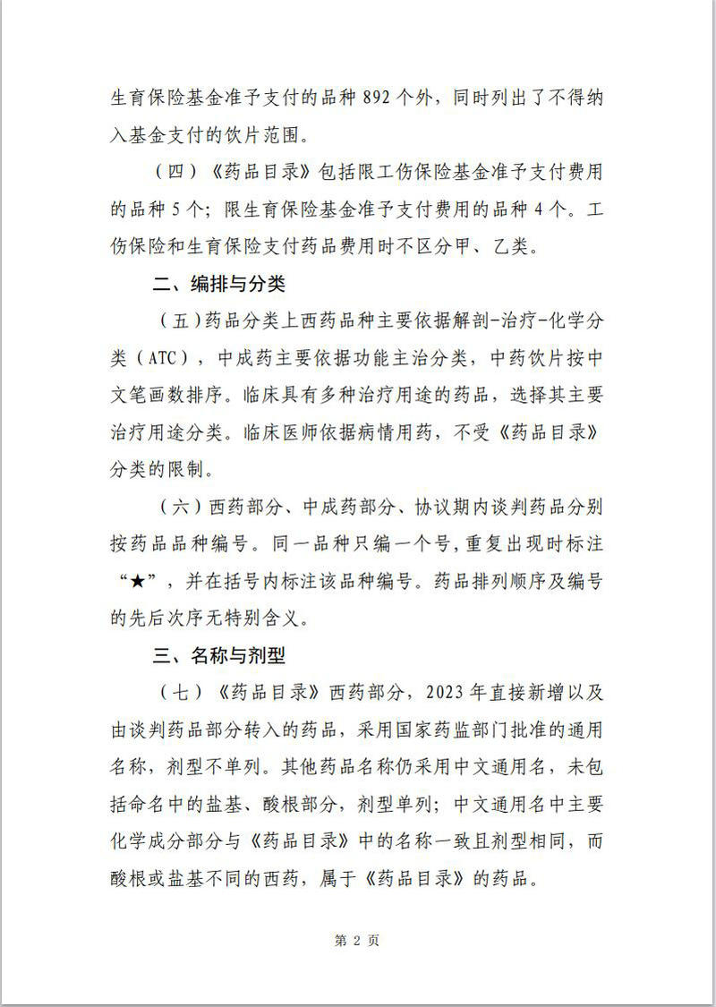(七)《藥品目錄》西藥部分,2023年直接新增以及由談判藥品部分轉(zhuǎn)入的藥品,采用國家藥監(jiān)部門批準的通用名稱,劑型不單列。其他藥品名稱仍采用中文通用名,未包括命名中的鹽基、酸根部分,劑型單列;中文通用名中主要化學成分部分與《藥品目錄》中的名稱一致且劑型相同,而酸根或鹽基不同的西藥,屬于《藥品目錄》的藥品。