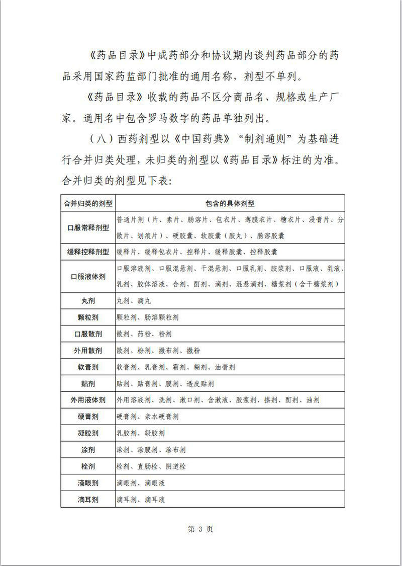 (八)西藥劑型以《中國藥典》“制劑通則”為基礎(chǔ)進行合并歸類處理,未歸類的劑型以《藥品目錄》標注的為準。合并歸類的劑型見下表: