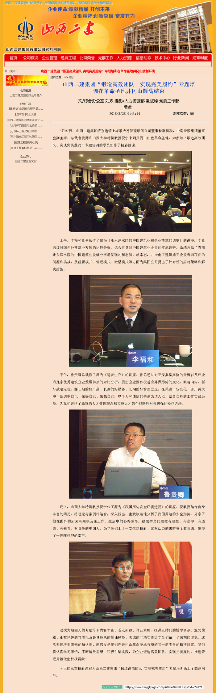 七年前,我們第一次上井岡山,企業正處在擺脫困境,走出谷底的非常時期。在以溫剛總經理為首的領導班子,團結帶領全體干部職工艱苦奮斗,頑強拼搏,勵精圖治,運用大氣量、大境界、大格局戰略思想,實施“三大戰略”,使企業恢復了元氣,叩開了邁上強大的成功之門,取得了山西二建“站起來”的重大勝利!