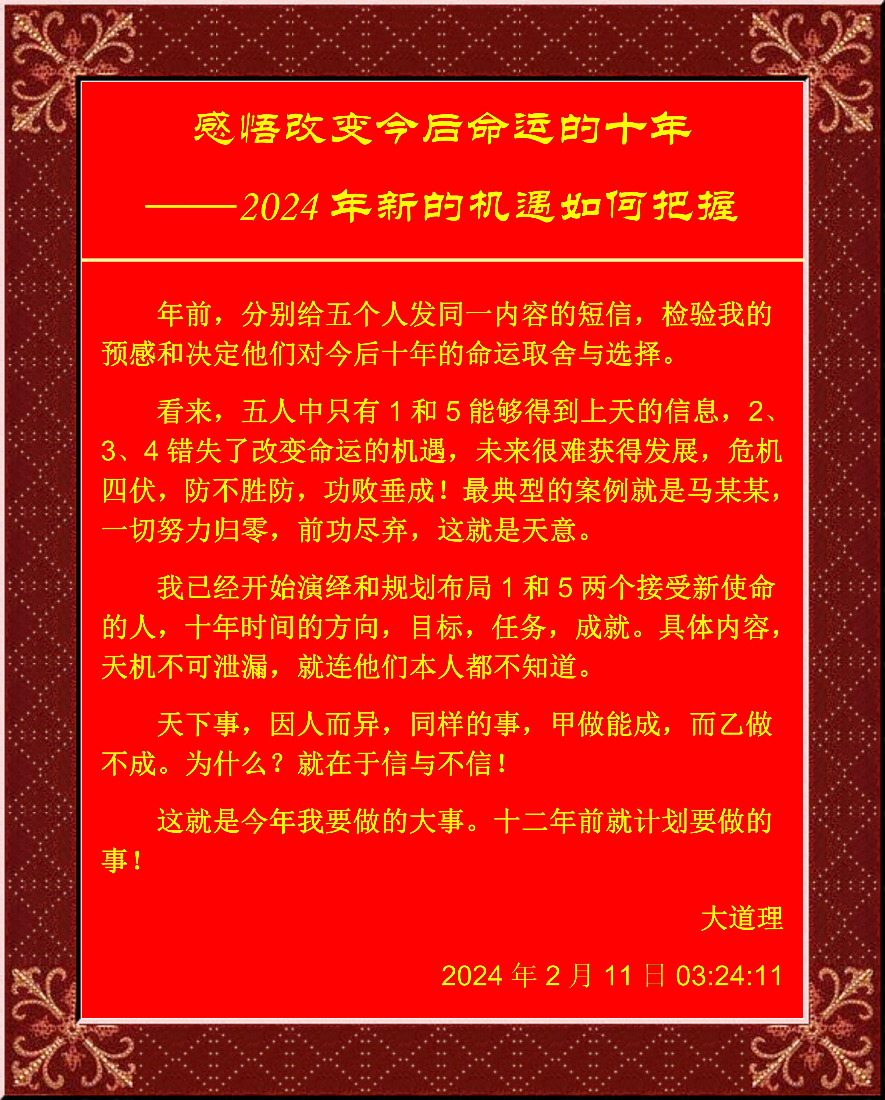 年前,分別給五個人發同一內容的短信,檢驗我的預感和決定他們對今后十年的命運取舍與選擇。
