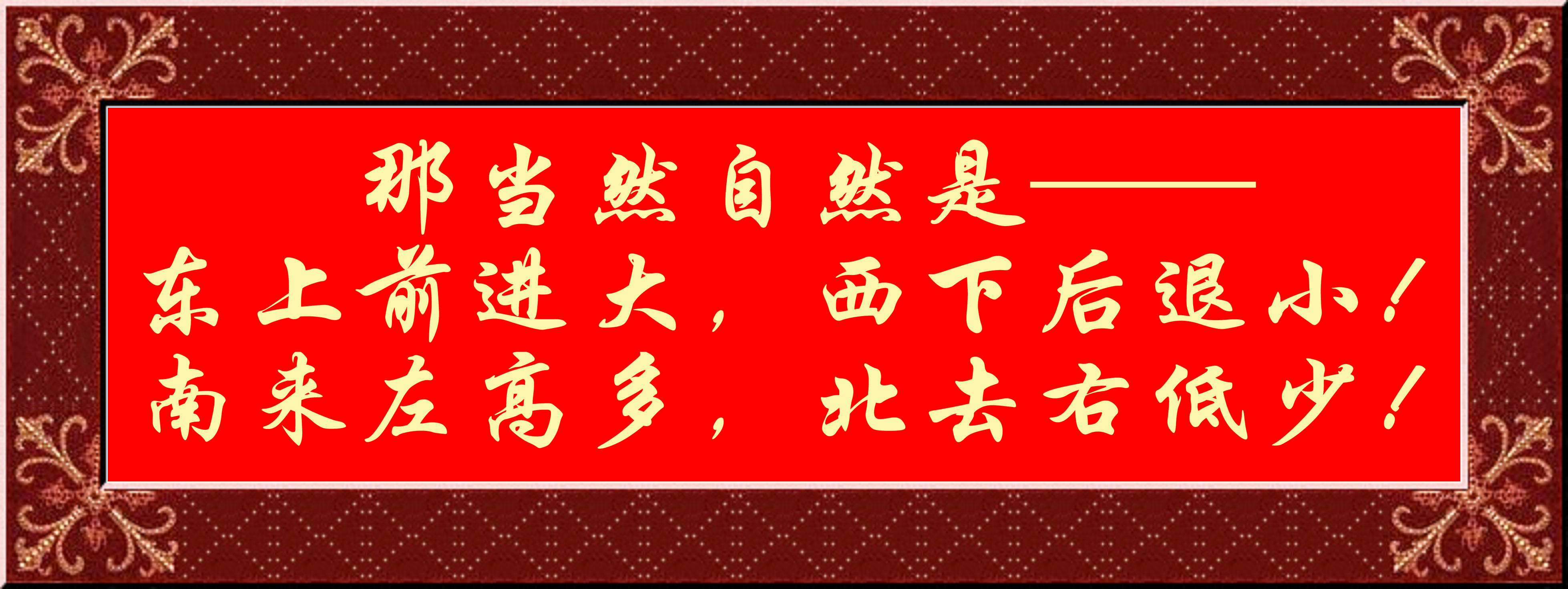那當然自然是——東上前進大,西下后退?。∧蟻碜蟾叨?,北去右低少!