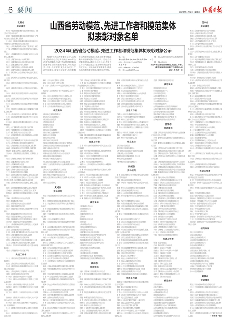 2024年山西省勞動(dòng)模范、先進(jìn)工作者和模范集體擬表彰對(duì)象公示