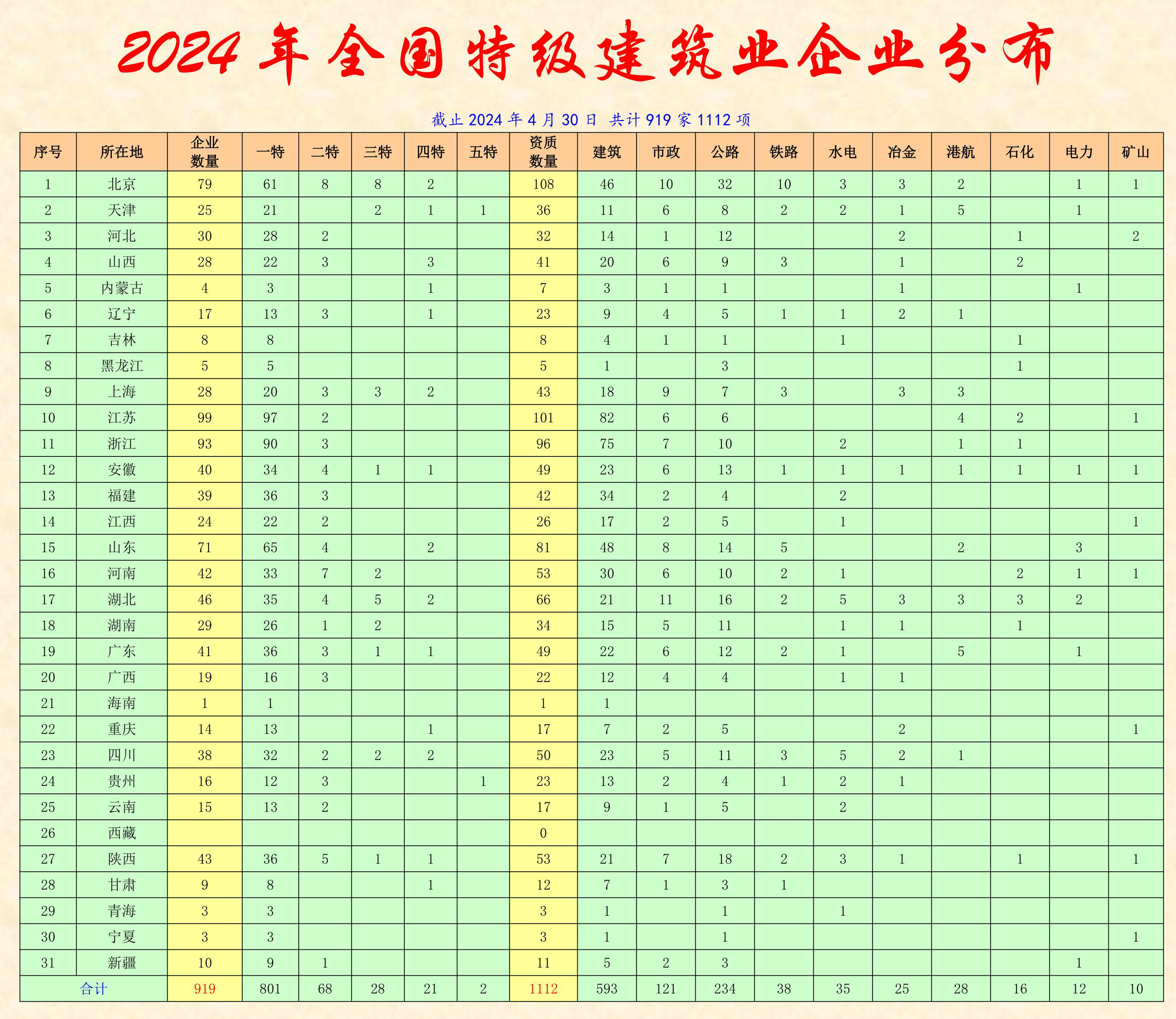 今天,住建部公布了今年第四批核準建設工程企業資質公告,貴州成為全國第二家擁有建筑業企業五特資質的省份。