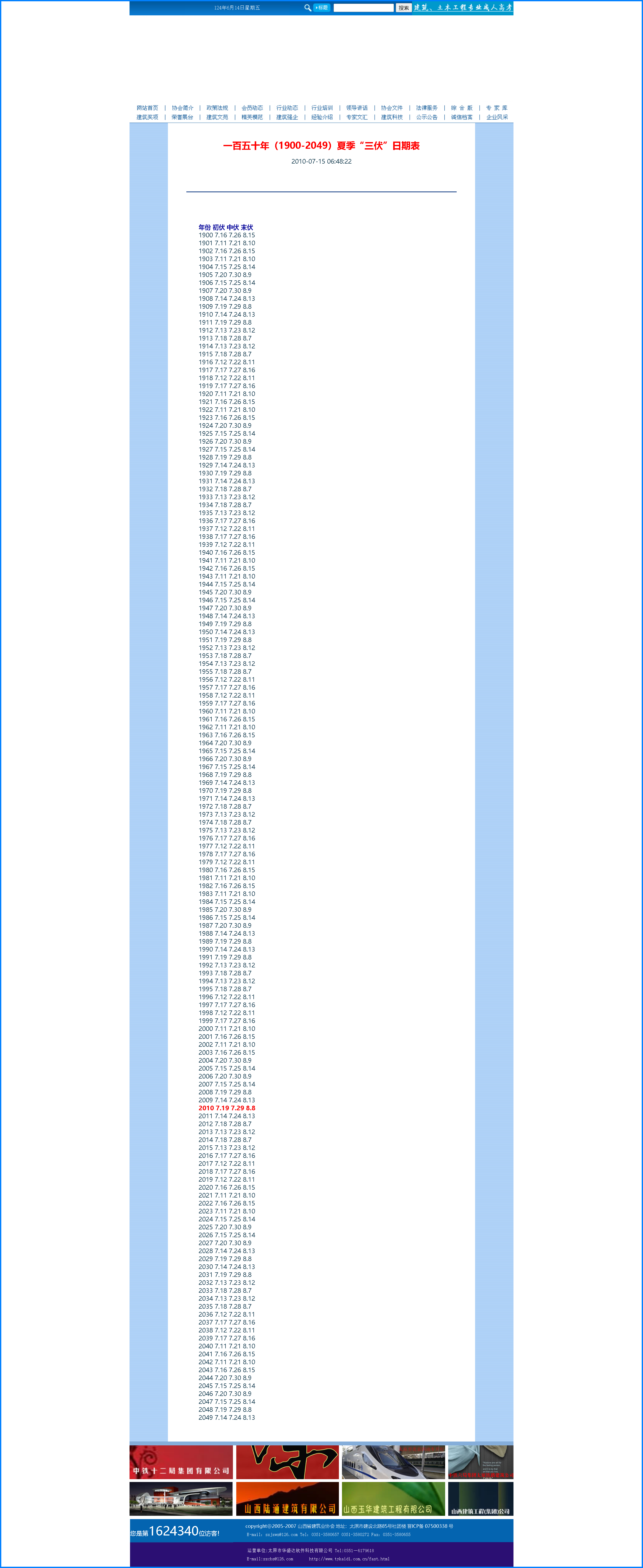 一、1900-2049的一百五十年,三伏天為30天的年份有43次,40天的年份有107次、