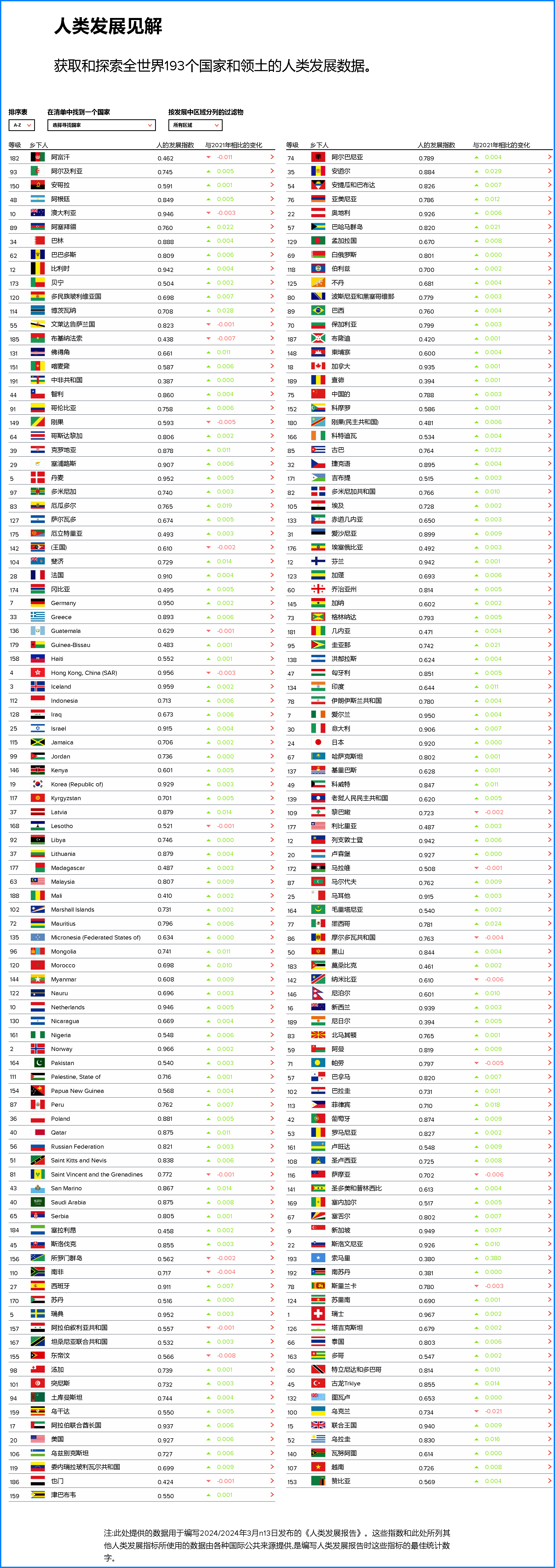 等級 國家或地區 人的發展指數 與2021年相比的變化