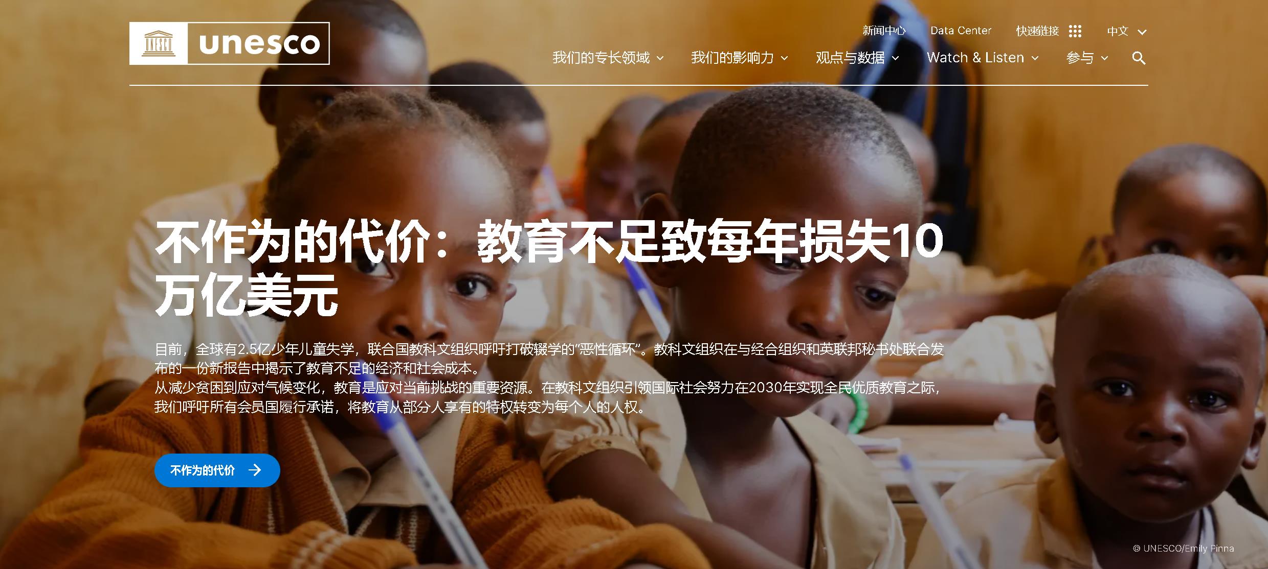 每年 10 萬億美元——全球因輟學和缺乏教育而付出的代價是驚人的。除了這些經濟方面的考慮,還有相當大的社會影響。這份教科文組織報告傳達的信息很明確:教育是一項戰略投資——對個人、經濟和整個社會來說都是最好的投資之一。我呼吁我們的成員國確保這一普遍權利盡快成為每個人的現實。