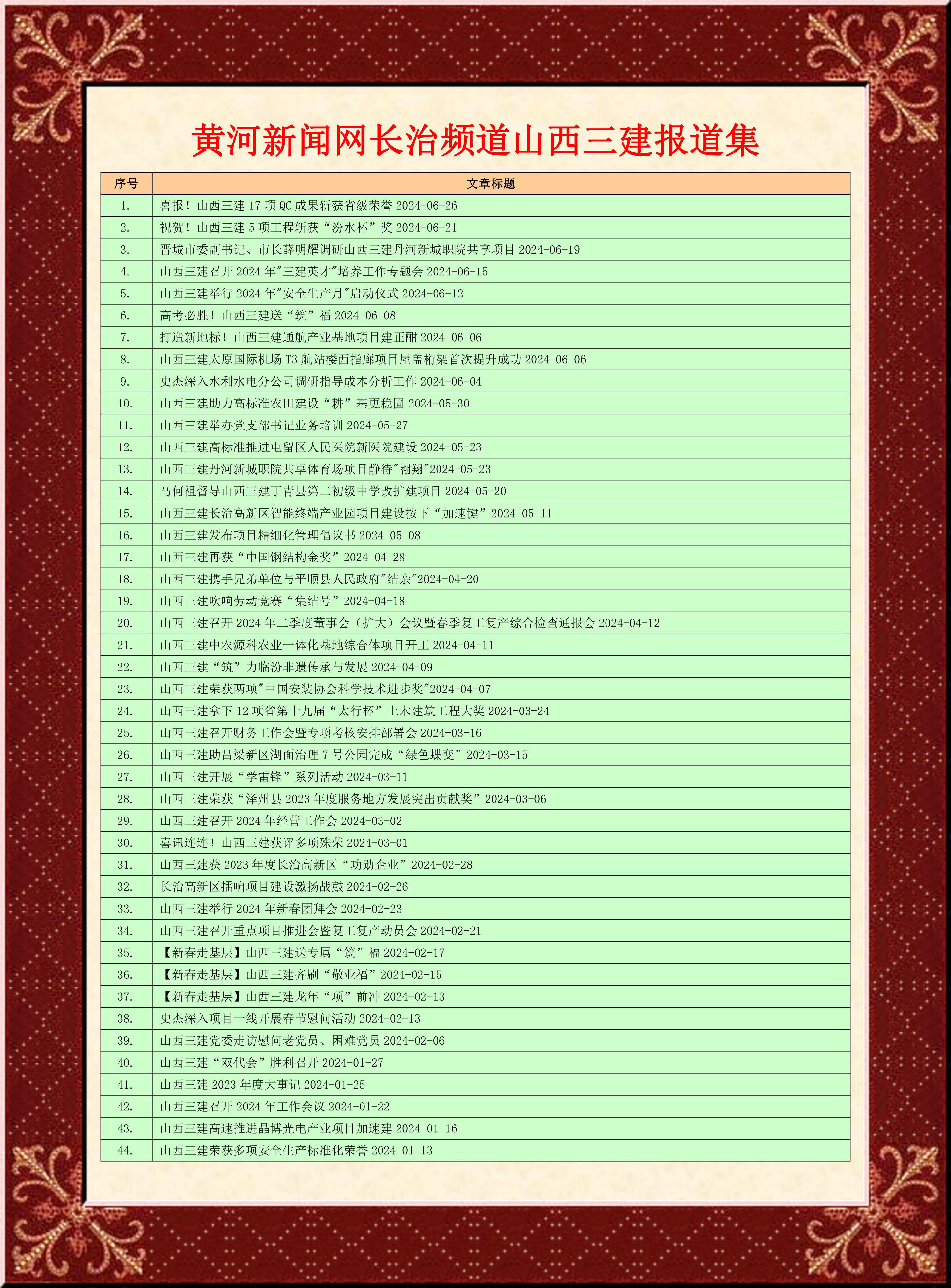 作為山西建筑業的一支勁旅,山西三建集團始終秉承“創新突破、奮發有為”的企業精神,不斷深化改革,創新管理,推動各項工作扎實開展,企業形象和社會信譽大幅提升。目前,集團正朝著“打造最具核心競爭力的建設企業集團”的目標奮力前行。