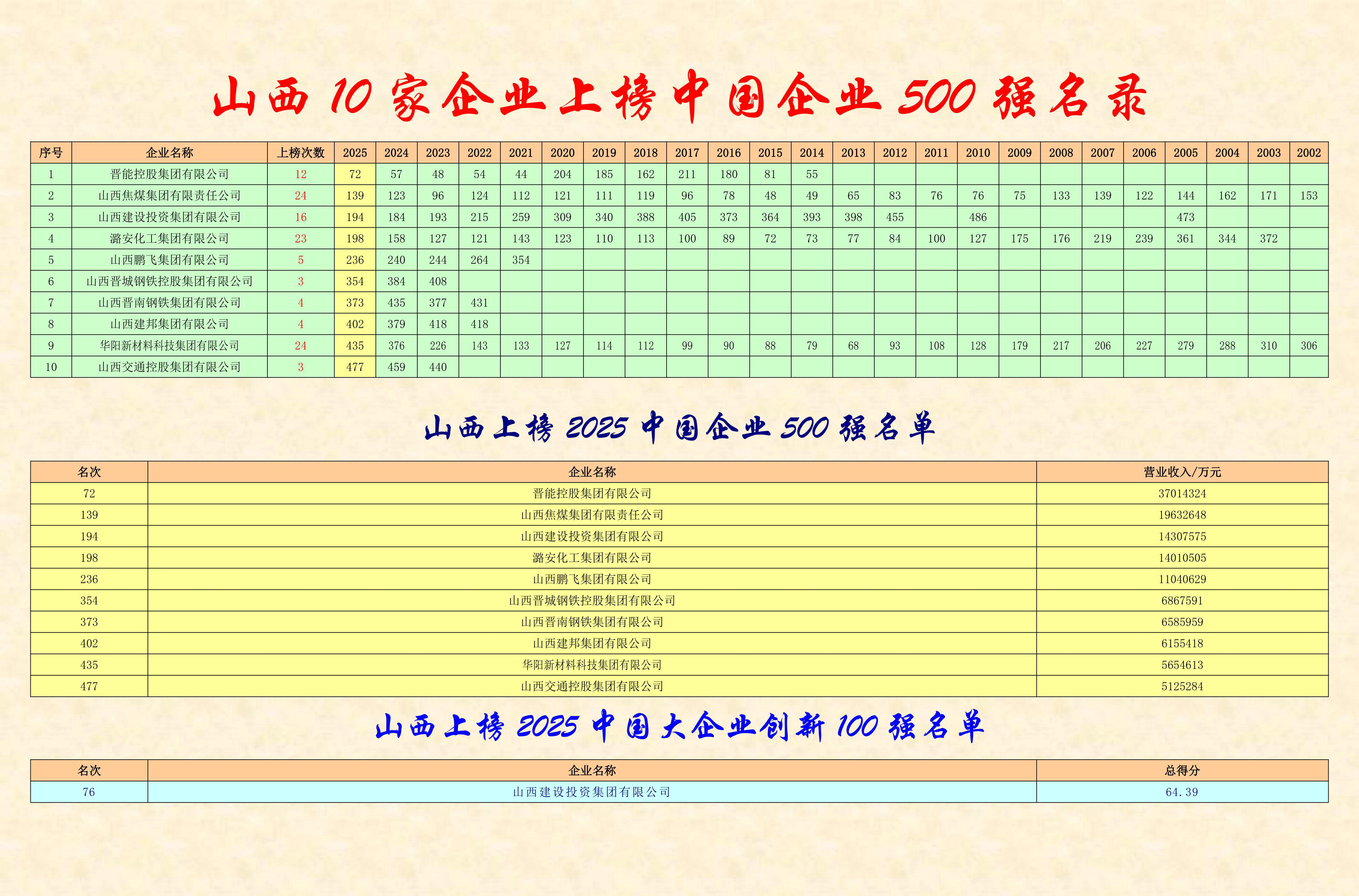 9月15日,中國企業聯合會、中國企業家協會發布“2025中國企業500強”“2025中國大企業創新100強”等榜單。山西建投以1430.76億元營收位列“2025中國企業500強”榜單第194位,同時以64.39的總得分排名“2025中國大企業創新100強”榜單第76位,展現了持續強勁的綜合實力與創新競爭力。