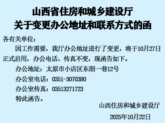 山西省住房和城鄉(xiāng)建設廳關于變更辦公地址和聯(lián)系方式的函