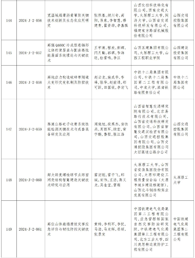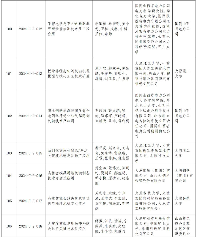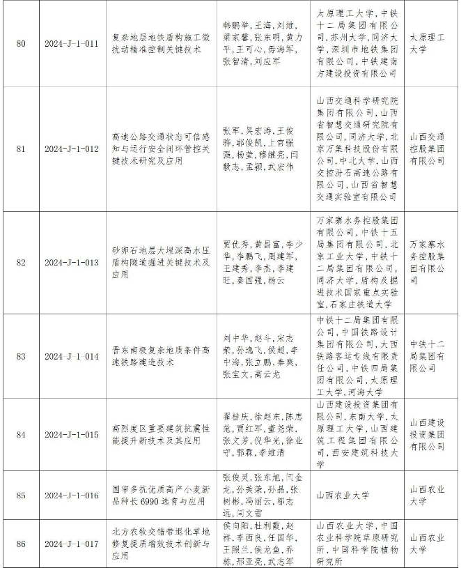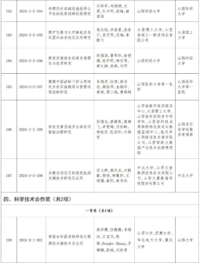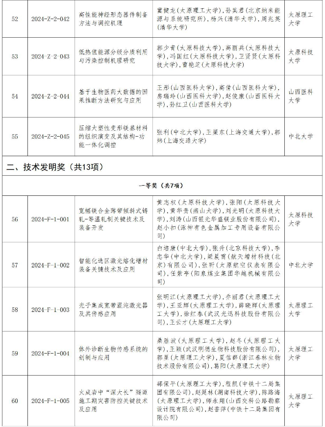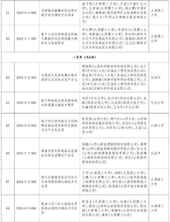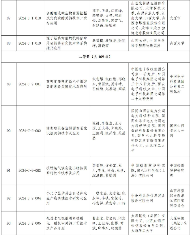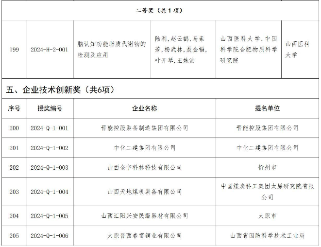 附件:2024年度山西省科學(xué)技術(shù)獎授獎項目(企業(yè))目錄