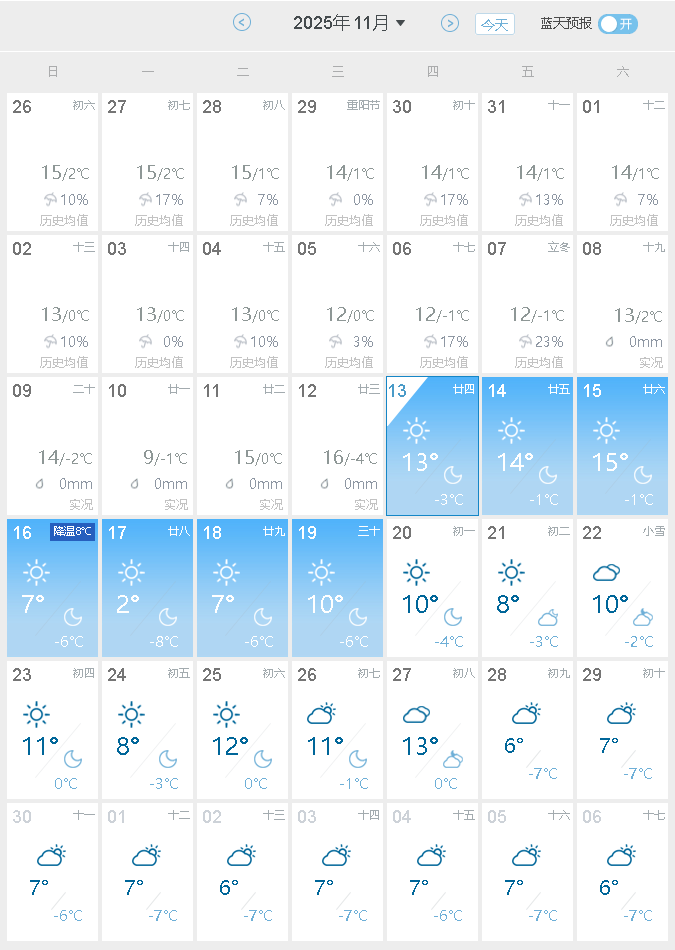 監(jiān)測顯示,11月以來,全國大部地區(qū)平均氣溫較常年同期偏高1℃至3℃,其中,內(nèi)蒙古中部、青海南部局地偏高4℃以上。未來10天,影響我國的冷空氣勢力將增強(qiáng),除華北中部、內(nèi)蒙古中東部、東北地區(qū)等地氣溫仍偏高外,中東部大部地區(qū)氣溫將由前期偏高轉(zhuǎn)為偏低。