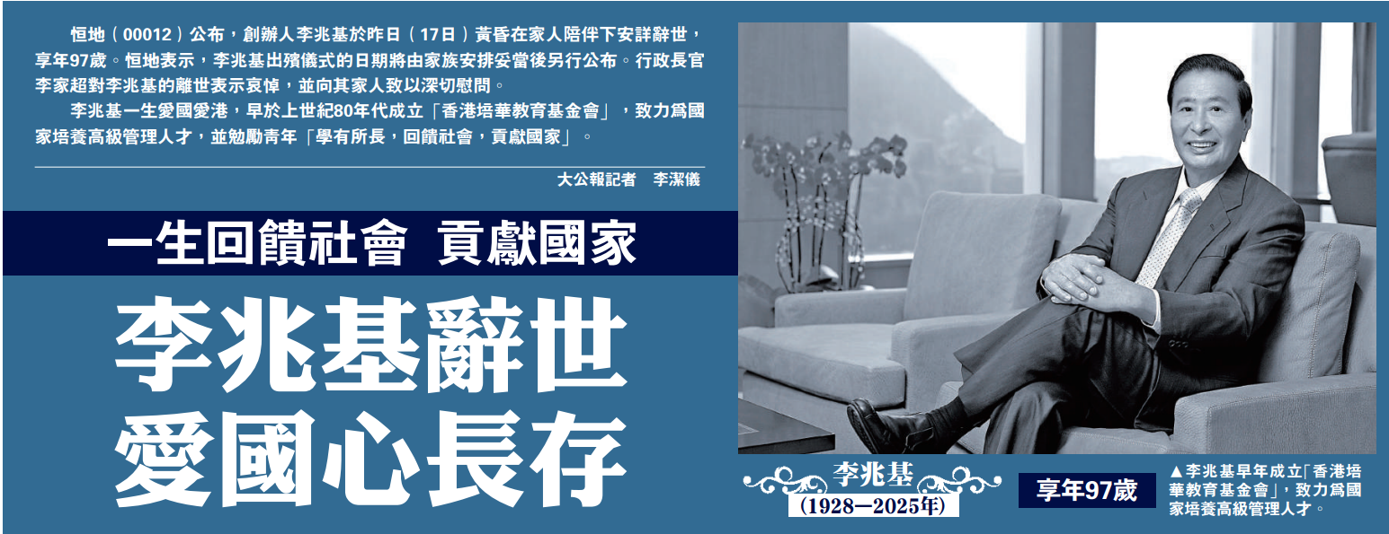 香港商界巨頭,一位是李兆基,今年3月17日以數不盡的榮譽和光環安詳辭世,留給后人太多太多的懷念和崇敬,此生無憾此生值得此生無價!