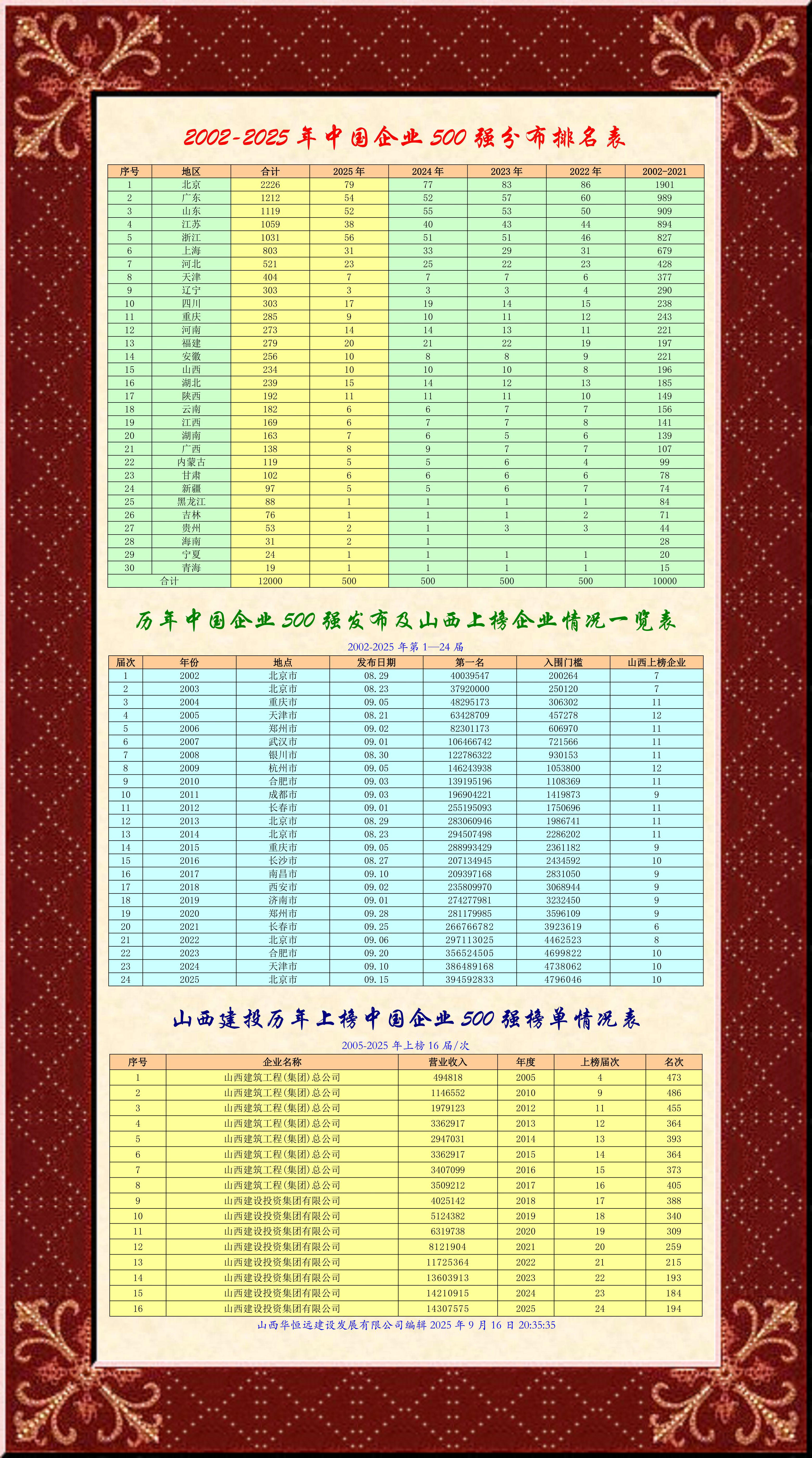 【行業動態】山西建投蟬聯2025中國企業500強、大企業創新100強榜單
